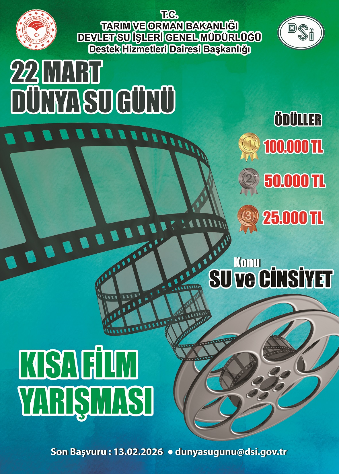 Yarışmaya katılacak eserlerin, 13.02.2026 tarihine kadar, gerekli katılım formu ve muvafakatnameler doldurularak dunyasugunu@dsi.gov.tr adresine gönderilmesi gerekmektedir.